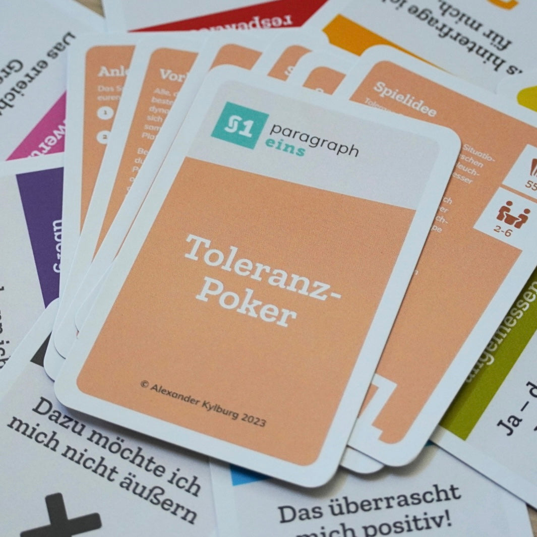 Tolerance Poker is designed to explore emotionally charged situations in human interactions, helping to better understand each other. Such situations can arise from external factors, but also from the behavior or views of participants in a group or team. Every behavior or expressed view will inevitably trigger emotional reactions in others.